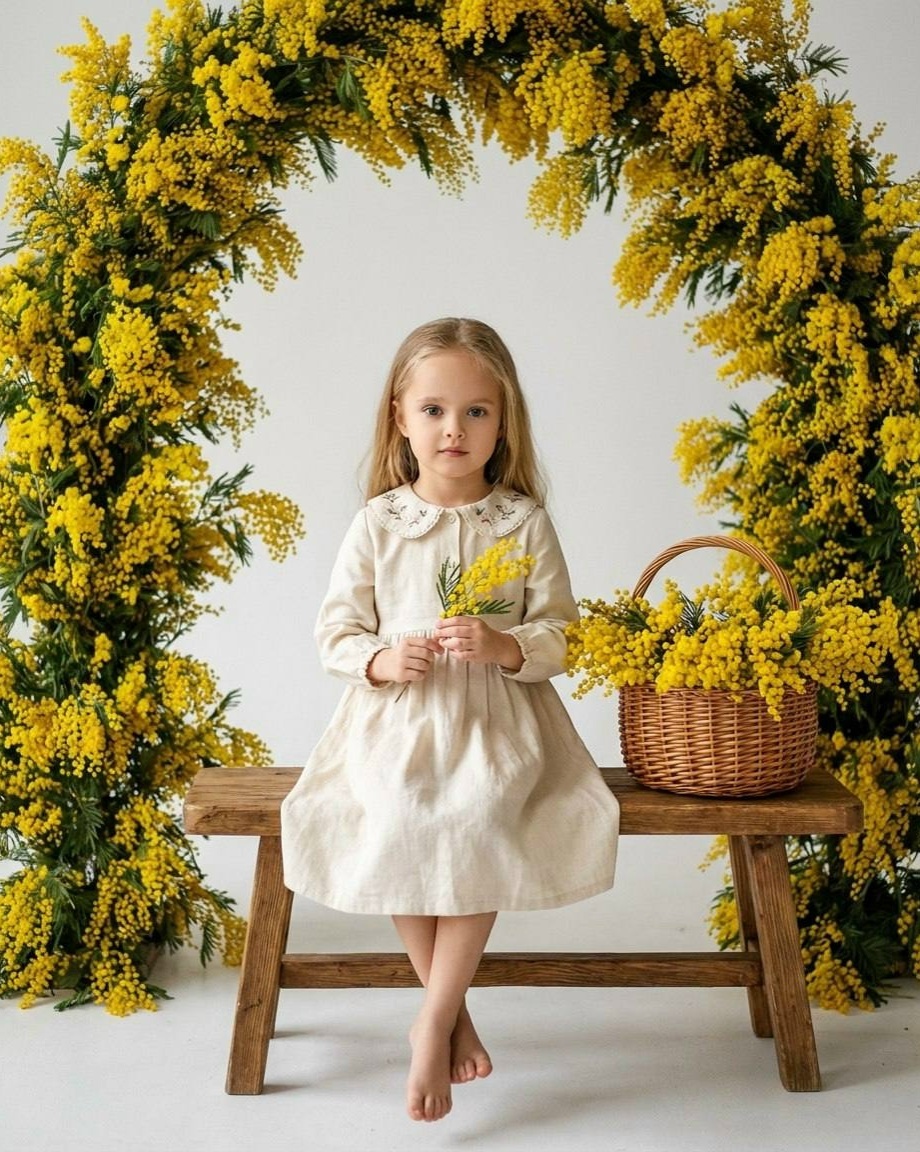 1) Заходим в БОТ ВК или БОТ ТГ 2) Жмем Выбор модели => Nano Banana PRO/Nano Banana 2 3) Добавляем свой фото (важно фото БЕЗ ретуши и любой обработки и фильтров), вставляем этот ПРОМТ: Фотореалистичный, файн-арт портрет девочки ,не меняй черты лица в винтажном кремовом льняном платье с вышитым воротничком, босиком, сидящей на низкой деревянной скамейке. Девочка держит веточку мимозы; вокруг большая арка из ярко-желтых цветов мимозы , справа на скамейке плетёная корзина, заполненная ярко‑жёлтыми цветами мимозы. естественное освещение, нейтральный белый фон, пастельные тона, натуральные текстуры дерева и плетения. Стиль: нежная, атмосферная, editorial/fine‑art фотография с лёгкой ретро‑пленочной зернистостью, shallow depth of field, 50mm, f/1.8, мягкое боке, тонкая ретушь, высокое разрешение. Без логотипов, водяных знаков и текста. Не меняй черты лица и цвет волос !! Еще больше промтов в группе ВК и в канале MAX !! Подписывайся, чтобы не потерять!! Делитесь результатами в комментариях:)