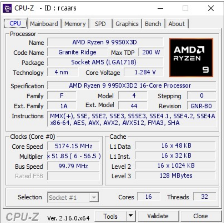 Недавно компания ASRock случайно подтвердила существование первого процессора Ryzen 9000X3D с двойным кэшем, который AMD ещё официально не представила. ASRock быстро удалила страницу, но она явно указывала на существование чипа Ryzen 9 9950X3D2. Теперь в сети появилась ещё одна утечка, раскрывающая «неофициальные» характеристики нового процессора. Источник: Wccftech Как заметил инсайдер @momomo_us, кто-то проверил образец Ryzen 9 9950X3D2 в CPU-Z. CPU-Z является популярной утилитой для проверки оборудования и, согласно странице результатов проверки, в разделе «Процессор» явно указано название модели AMD Ryzen 9 9950X3D2. Однако на скриншоте CPU-Z Ryzen 9 9950X3D и Ryzen 9 9950X3D2 указаны в разных разделах. Эта запись может относиться к существующему процессору Ryzen 9 9950X3D, но раздел TDP показывает более высокое энергопотребление. В отличие от Ryzen 9 9950X3D, ожидается, что новинка будет иметь максимальный показатель TDP 200 Вт. Ryzen 9950X3D имеет показатель 170 Вт, это может озн