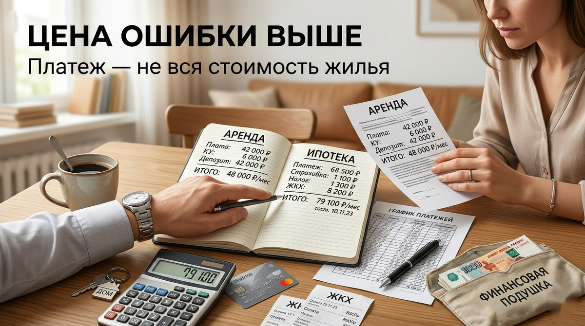 Теперь вопрос звучит иначе. Не "что красивее", а "какую ошибку я могу себе позволить". Потому что аренда сжигает деньги постепенно, а неудачная ипотека может делать это агрессивно: большим платежом, пустой подушкой, зависимостью от одного дохода и постоянным страхом, что любой сбой в жизни сразу ударит по квартире.