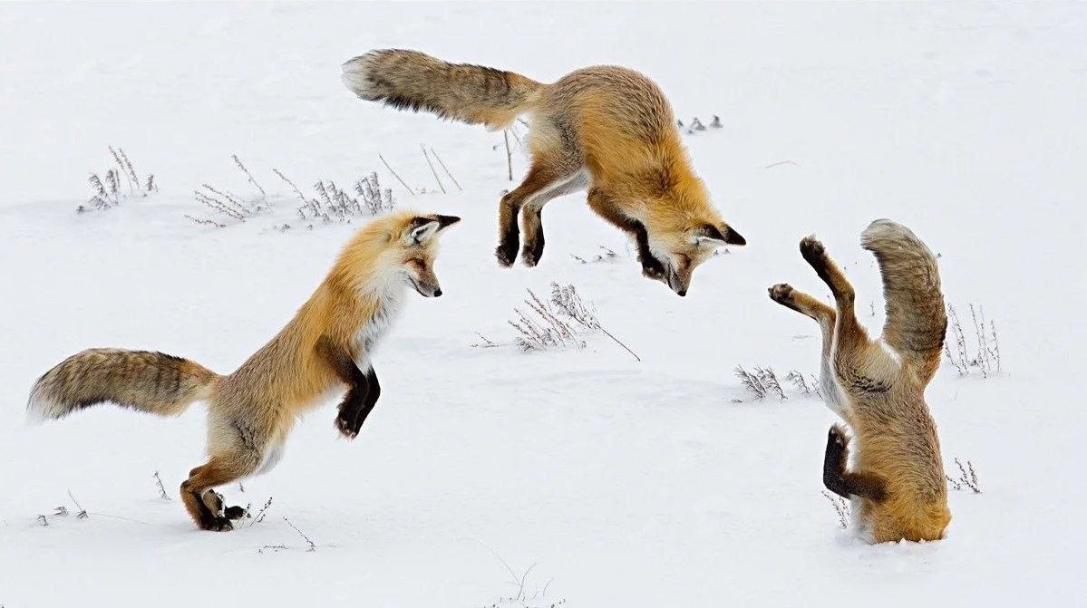 В природе обычно так лисы прыгают. Прыжок, когда надо достать мышь из снега, называется - мышкование😀