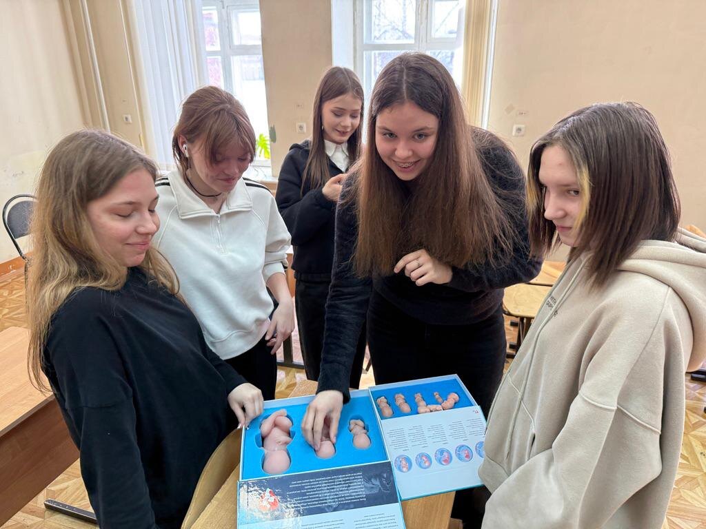 До сих пор кто-то думает, что жизнь человека начинается с момента рождения. А если быть точным, тогда уж с момента регистрации в ЗАГСе. А кто-то даже говорит, что с момента появления сознания. Во сколько только оно появляется? И что это такое сознание? Мало кто знает, что к концу третьей недели беременности у ребёнка уже бьётся свое сердце. К семи неделям формируется нервная система, а в 10 недель есть уже почти все органы. Не все из них ещё работают. Например, лёгкие еще будут развиваться почти до конца беременности. Просто ребёнок ими пока не пользуется. Как удивительно устроен человек. Стоило девчатам только в руки взять муляжи. Как тут же включаются рефлексы. Хочется его понянчить. Он такой маленький, хорошенький. Красавицы девчата. Мальчики не стали фотографироваться. В этом году у меня немного сократили количество уроков в техникуме. Семь групп студентов и всего по 24 часа на весь год в каждой группе. Жалко, а ведь так много о чем можно поговорить. На тему «брак, семья любовь»