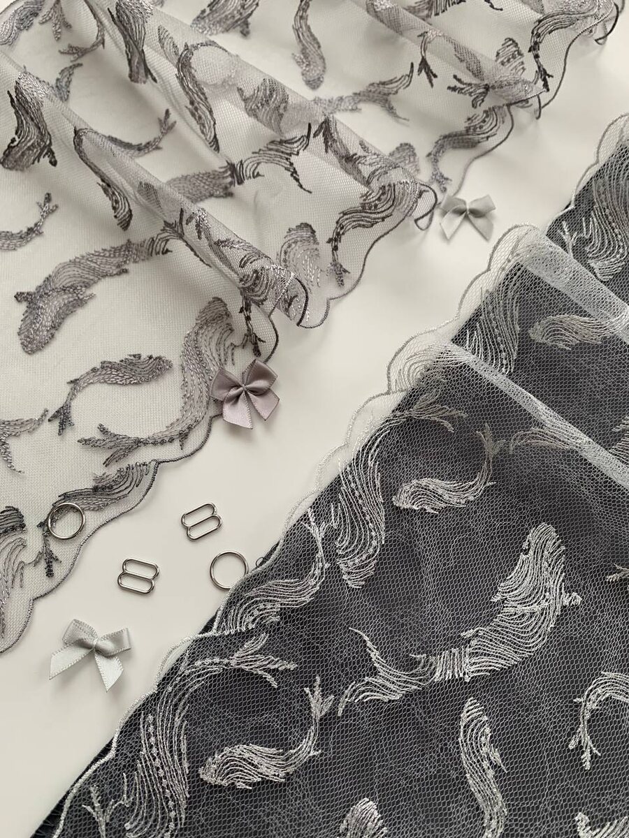 ! 🌊 Встречайте новинку — вышивка с китами на сетке. Выполнена в двух базовых цветах: темно-сером и бело-молочном. Это кружево — настоящая находка для тех, кто ценит уникальный дизайн. Белье из него получится невероятно красивым. Приходите выбирать! Количество ограничено, повтора не будет, находится в разделе Новинки
