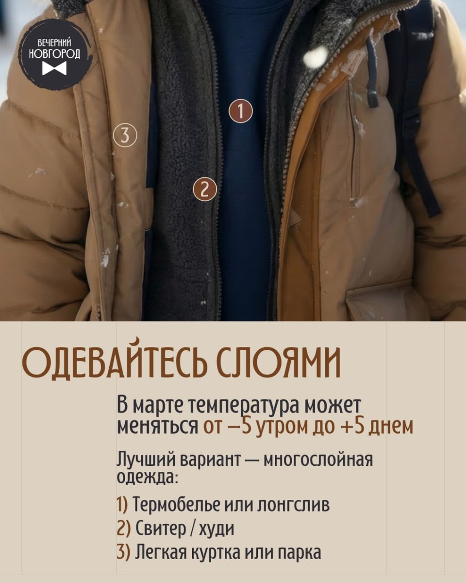 Чтобы не заболеть, важно одеваться правильно: — Одевайтесь слоями: футболка, свитер, легкая куртка — так проще подстроиться под погоду — Не забывайте про шапку и шарф — ветер все еще холодный — Держите ноги в тепле — это основа защиты от простуды — Берите с собой зонт или капюшон — погода меняется быстро Берегите себя: лучше немного «перестраховаться» в одежде, чем потом лечиться. 📲 МЫ В MAX
