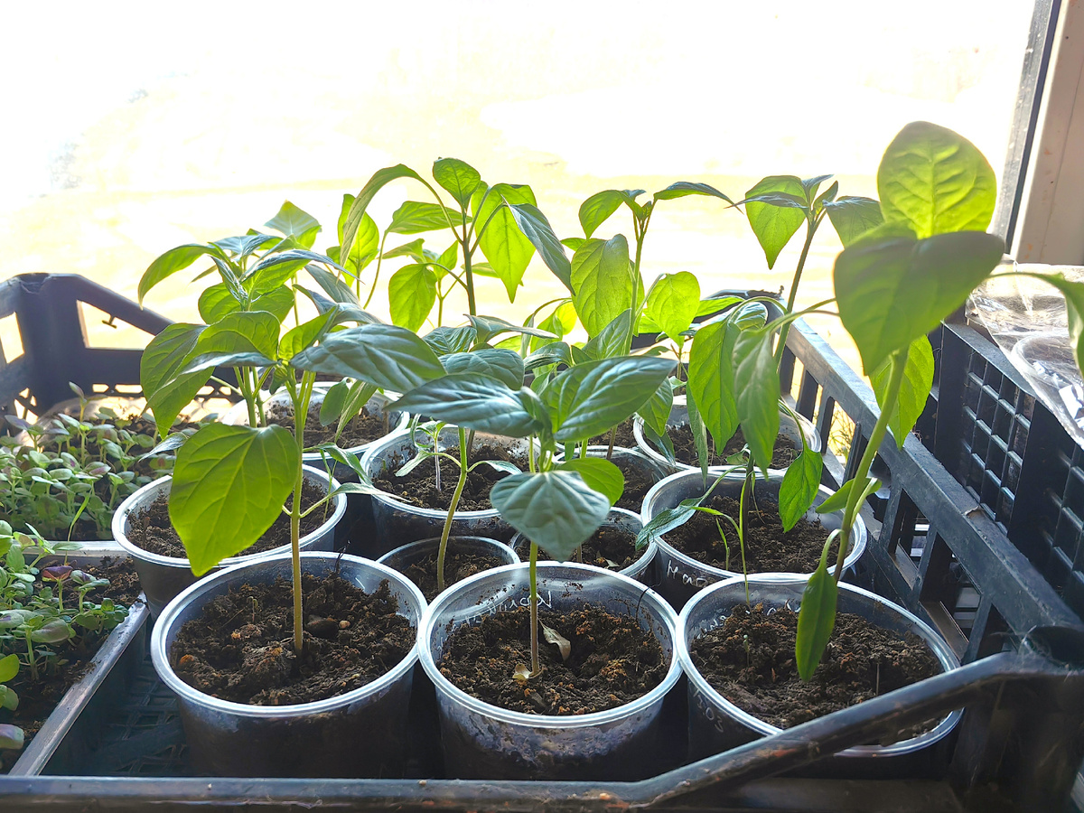 К слову, из туговсхожих у меня в этом году была посеяна пассифлора. Она не всходит обычно вообще. Но если ее пролить кипятком, то шансов больше)) У меня через несколько дней уже взошло одно семечко!) Так что рабочий метод, надо брать! Придумала его не я. Про кипяточный посев луков я узнала на канале Семена Алтая. а про посев перцев с замачиванием в воде 80 градусов мне рассказали тут, на Дзене в комментариях) Я ленивое существо, замачивание это не для моих масштабов вариант)) Так что я только упростила схему - теперь без замачивания, только с проливанием. Да, я перцы, баклажаны и томаты на время появления всходов ставлю на стеллаж в тепло. На стеллаже греются лампы, так что ноги в тепле. А луки, землянику и все цветочные оставляю на террасе. Там днем +27+28, а ночью +14+15. Но все всходят одинаково хорошо. Старшие перцы уже живут в стаканах 0,5л на террасе с перепадом температур. А малыши пока только всходят и начинают расти) Так что годная тема!