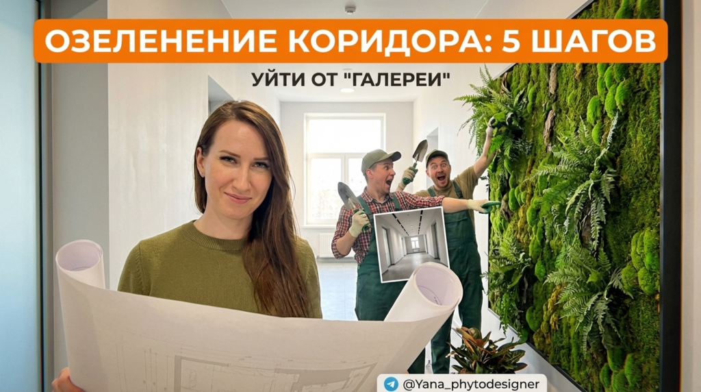 На объектах я часто вижу один и тот же сценарий: коридор отремонтировали аккуратно, свет поставили «как в каталоге», а потом хотят быстро решить ощущение пустоты — добавляют пару горшков с зеленью у входа и у зеркала. Через месяц растения выглядят уставшими, проход стал теснее, и вместо акцента получается та самая «проходная галерея», где всё просто мелькает. Озеленение коридора работает, но только если понимать механику: как человек идёт, куда смотрит, где есть свет и что будет жить без ежедневного внимания. Ниже — как я это делаю в проектах, чтобы зелень стала частью интерьера, а не временной декорацией. Коридор — пространство движения. В нём редко задерживаются, взгляд скользит вперёд, а боковые детали читаются фрагментами. Если поставить растения «по краям для симметрии», они не становятся смысловым центром: вы их не рассматриваете, вы их обходите. Плюс почти всегда есть два ограничения: узкая ширина и дефицит естественного света. В результате страдают и композиция, и сами растени