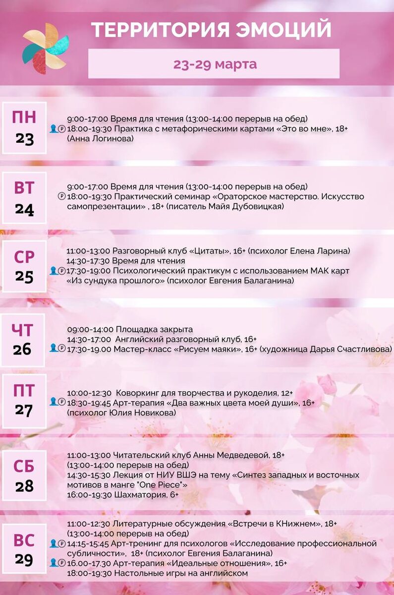 ✨ Территория эмоций в парке Швейцария, афиша 23–29 марта