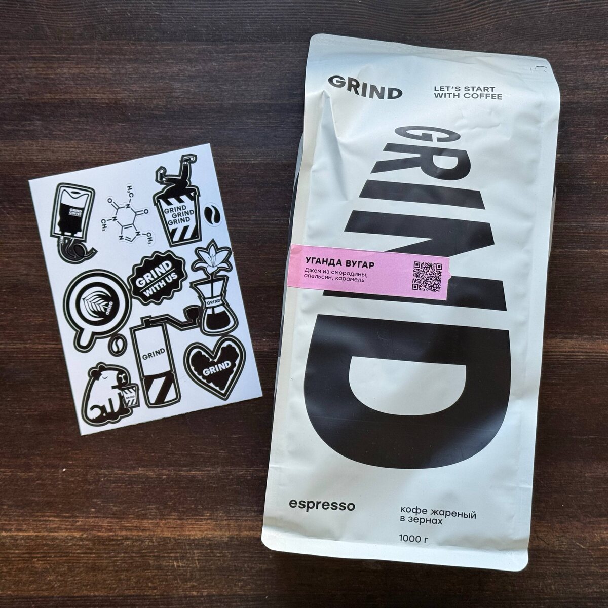Мне приехал большая пачка Уганды от Grind. В прошлый раз я пробовал кофе от Grind в обжарке под фильтр. И это было очень хорошо! А в этот буду пробовать обжарку под эспрессо. Снова обращаю внимание на описание вкуса и вижу сладкие десрикпторы "джем" и "карамель" вместе с ягодной и цитрусовой кислотностью "смородина" и "апельсин". Ожидаю, что кофе будет одновременно и фруктовый, и сладкий. Это звучит очень хорошо. Вместе с пачкой приехали прикольные фирменные наклейки. Пробовали кофе от Grind? Как вам? @Кофезавр · Youtube · Тelegram+чат · VK · Boosty · Dzen · Reddit · Мах+чат