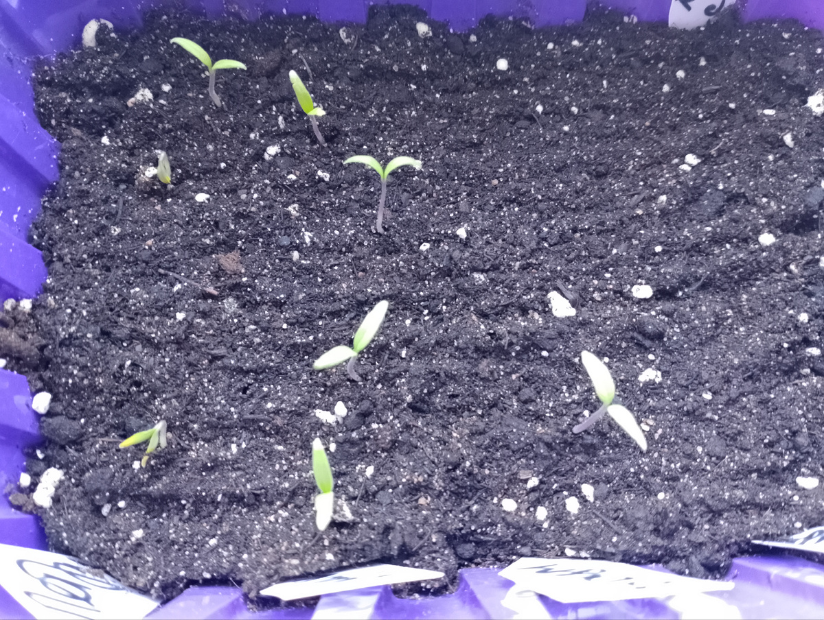 Помидоры начинают потихоньку вылезать из земли. Совсем не дружно в этом году семена всходят. И, похоже, лунный календарь им безразличен. Быстрее всех выскочил «Звёздный истребитель» и жёлтый томат