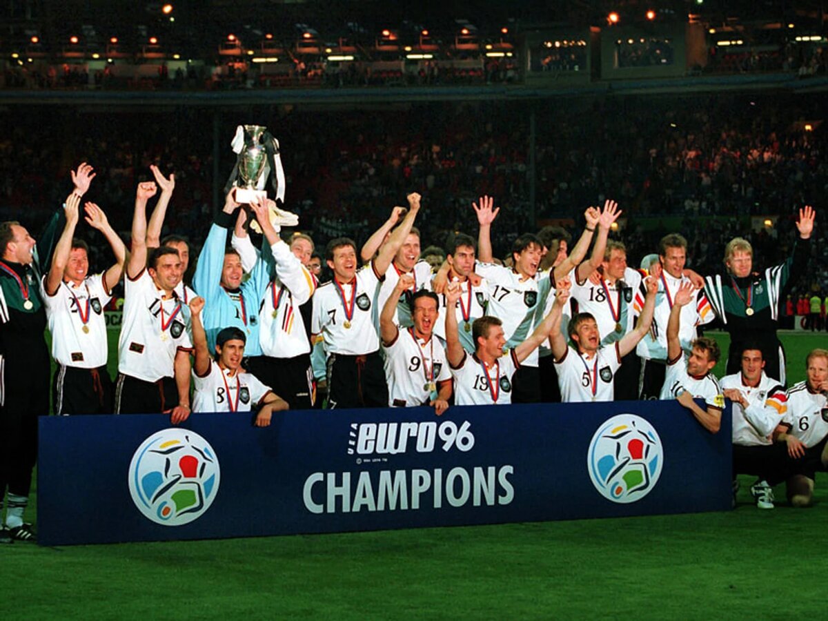 Чемпионат Европы по футболу 1996 — турнир, который изменил европейский футбол. Именно здесь: Евро состоялся в Англия — на родине футбола. Участвовали 16 сборных, среди которых: Это был первый Евро в современном формате. Турнир сразу дал драму: В плей-офф прошли: Один из самых драматичных матчей в истории Евро. Ничья 1:1 → серия пенальти. Решающий промах: Гарет Саутгейт Германия в финале. Снова серия пенальти. Герой — вратарь Чехии. Сенсация — Чехия в финале! Матч состоялся 30 июня 1996 года. Счёт открыл: Патрик Бергер (пенальти) Но Германия отыгралась благодаря: Оливер Бирхофф А затем случилось историческое событие… Золотой гол Бирхоффа Игра завершилась сразу после гола. Итог — 2:1 Чемпион Европы: Сборная Германии по футболу Маттиас Заммер Алан Ширер — 5 голов Карел Поборски Андреас Кёпке Берти Фогтс Вратарь: Андреас Кёпке (Германия) Защитники: Маттиас Заммер (Германия) Паоло Мальдини (Италия) Марсель Десайи (Франция) Лоран Блан (Франция) Полузащитники: Карел Поборски (Чехия) Зинедин З