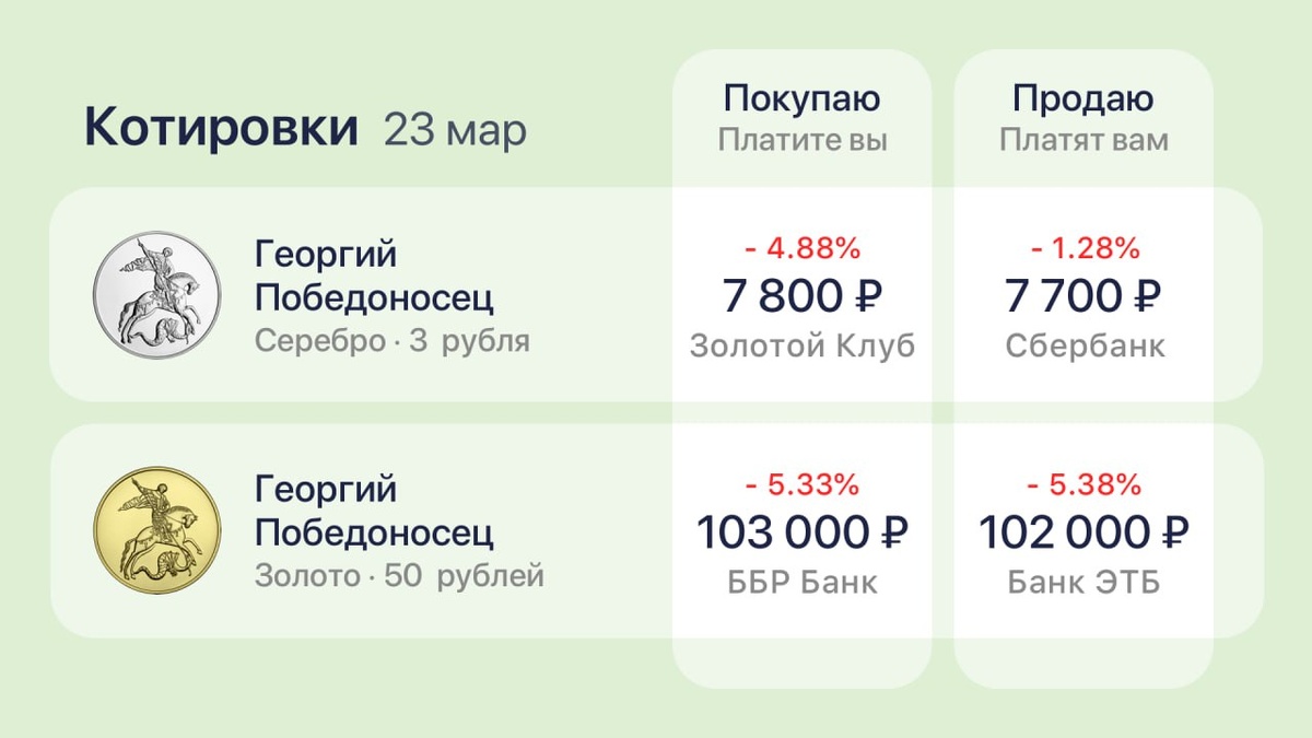 Биржевые котировки: Золото: 11 585 ₽ -5.4% Cеребро: 189 ₽ -4.1% Актуальные котировки монет: 👉 https://t.me/GdeMonetaBot/start