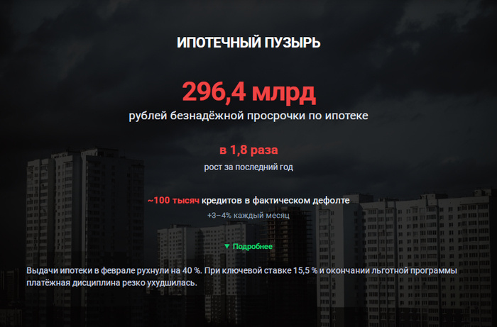 Российский рынок первичной недвижимости вошел в 2026 год в состоянии глубокого структурного кризиса. «Диалектик» выяснил, что последствия многолетней накачки отрасли деньгами через льготную ипотеку обернулись рекордным затовариванием: девелоперы не могут распродать более 81 миллиона квадратных метров жилья, а покупатели перестают справляться с кредитными обязательствами. На фоне жесткой политики Центробанка строительный сектор оказался на пороге масштабных дефолтов и банкротств средних игроков. Страна пустых новостроек Официальные данные начала 2026 года фиксируют беспрецедентный разрыв между объемами строительства и реальным платежеспособным спросом. Из 120 миллионов квадратных метров жилья, строящихся сегодня в России, девелоперам удалось найти покупателей лишь на 32%. Остальные 68%, а это гигантский объем в 80, 6–81, 7 млн кв. метров, стоят нераспроданными. В физическом выражении это означает, что по всей стране «зависло» порядка 1, 6 миллиона стандартных квартир. Динамика показывае