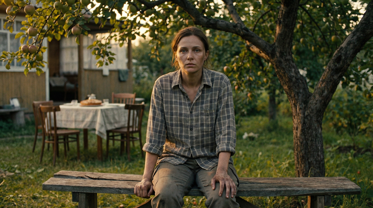 Я вытащила скамейку. Руслан помог — молча, не спрашивая. Мы поставили её на место, под яблоню.