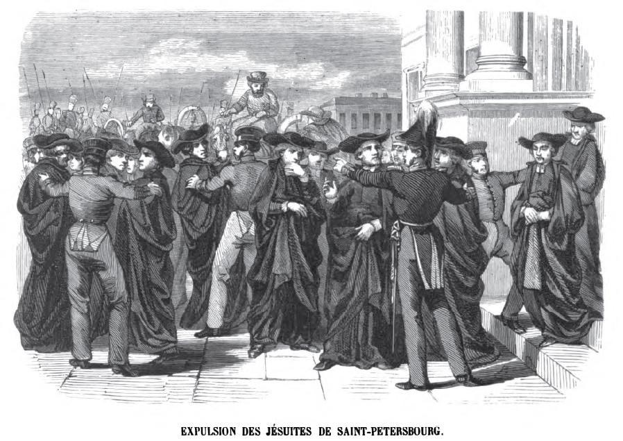 Деятельность ордена иезуитов (Общества Иисуса) в Российской империи была полна противоречий и завершилась указом о полном изгнании. Эта мера, предпринятая императором Александром I в 1820 году, стала финалом многолетнего сложного конфликта. Общество Иисуса (мужской духовный орден Римско-католической церкви) было основано в 1534 году Игнатием Лойолой. Благодаря широким привилегиям, дарованным папой, орден быстро развивался и приобретал все большее влияние в Европе. История иезуитов в России началась в XVII веке: первые из них появились при дворе Лжедмитрия I и активно содействовали его попыткам занять престол. В частности, можно назвать имена поляка Андрея Лавицкого (Andrzej Ławicki), который написал сочинение о короновании самозванца. Позднее, в 1689 году, в Москве в течение нескольких месяцев находился французский иезуит Фуа де ла Невилль, оставивший потомкам «Любопытное и новое известие о Московии». После первого раздела Речи Посполитой Екатерина II позволила иезуитам сохранить свое