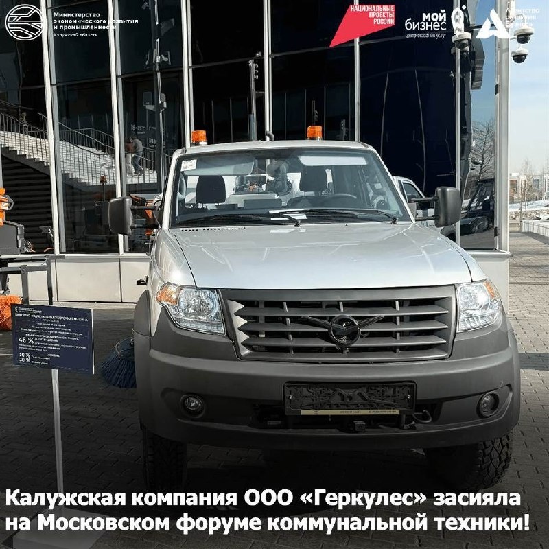 Министерства строительства и ЖКХ России. Основной темой форума стало внедрение умных технологий и роботизированных комплексов для повышения производительности труда в коммунальном хозяйстве. 🌟 Калужская гордость: Калужская компания ООО «Геркулес» представила свою спецтехнику на федеральной выставке. Девиз компании: «Наши машины украшают город!». Стенд компании был подготовлен при поддержке Центра поддержки предпринимательства в рамках нацпроекта «Эффективная и конкурентная экономика».