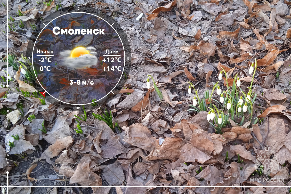Замечательную весеннюю погоду принесёт вторник, 24 марта, жителям Смоленска и всей области: тёплый весенний ветерок, переменная облачность, преимущественно без осадков – самое время налюбоваться на весеннюю красоту и первые подснежники. Ночью и утром синоптики обещают местами слабый туман. Температура в тёмное время суток держится минусовая: по области – от -5°С до 0°С, в Смоленске – от -2°С до 0°С. А днём на солнышке будет пригревать до +11°С …+16°С в области, и до +12°С …+14°С в городе. Ночью почти безветренно: ветер переменный, слабый; днём юго-западный ветер усилится до 3-8 м/с. Атмосферное давление 745 мм рт. столба, существенно меняться не будет. МЧС России напоминает: ❗соблюдай осторожность при использовании огня на природе и приусадебных участках; ❗не поджигай сухую траву - это небезопасно! @mchs_smolensk