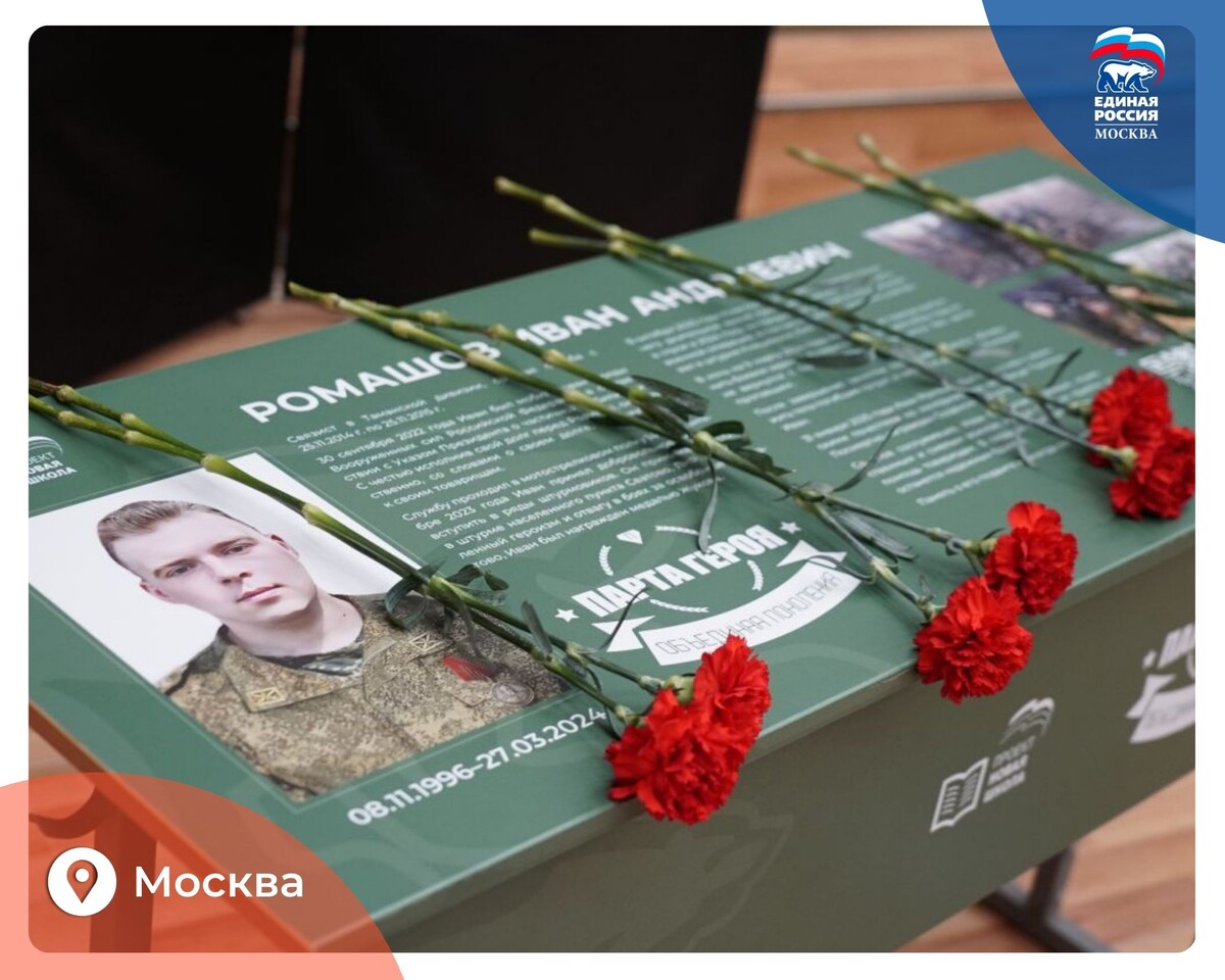 В районе Строгино «Единая Россия» открыла Парту Героя в память об участнике СВО Иване Ромашове
