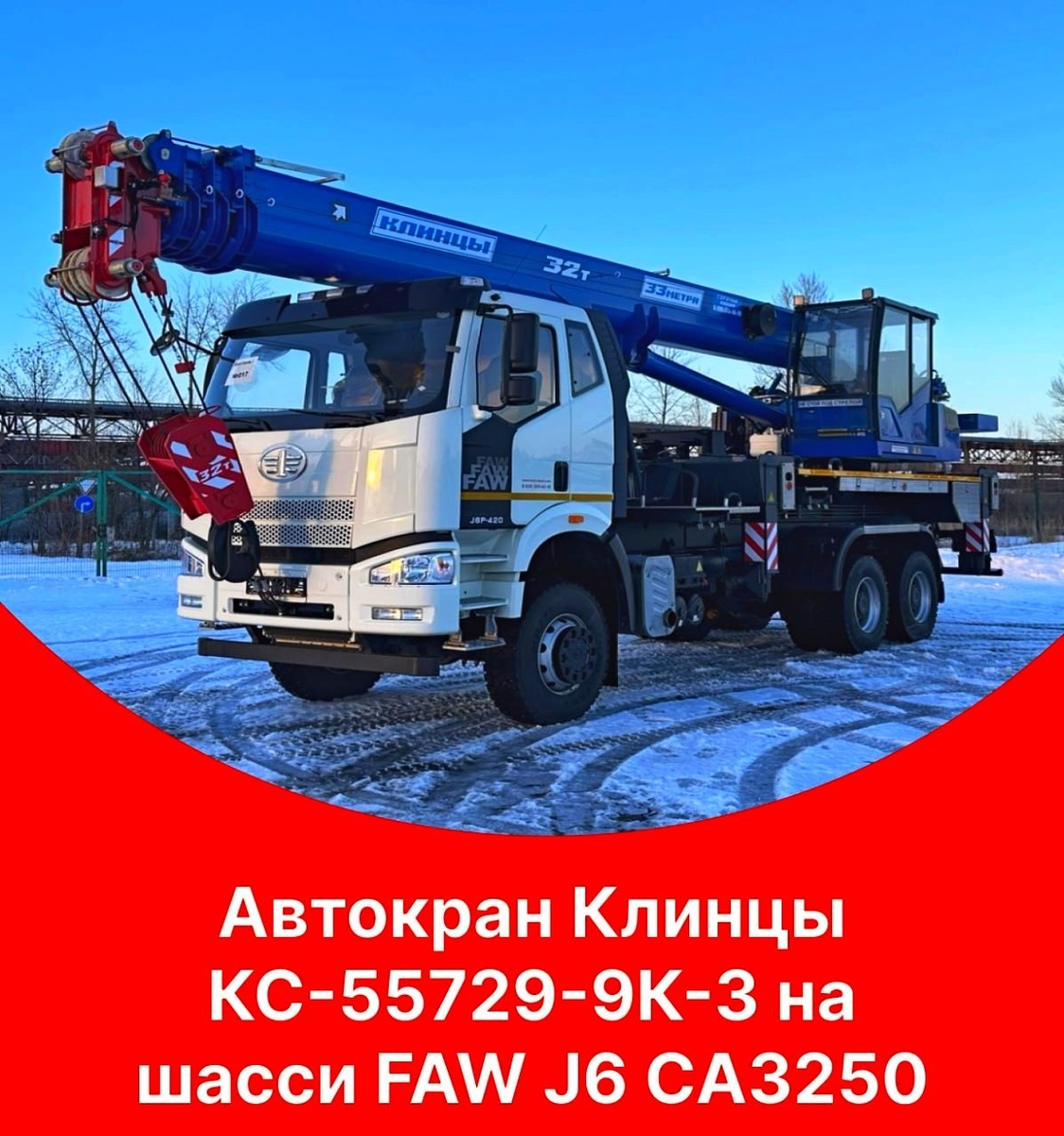 🔥 НОВЫЙ Автокран Клинцы КС-55729-9К-3 на шасси FAW CA 5250 — мощная и надежная техника для поднятия тяжелых грузов на строительных