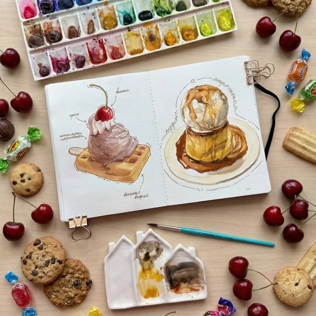 🍓 Что нужно, чтобы сделать вечер пятницы идеальным? Вдохновение, яркие оттенки и аппетитные десерты, которые поднимают настроение 💫 Тема сладостей оказалась настолько интересной, что расставаться с ней не хочется, согласны? Если вам нравится рисовать красивую еду, если вы хотите повторить сюжеты, которые видите на фото - внимательно следите за новостям и в группе, скоро вас ждет что-то очень интересное 👀