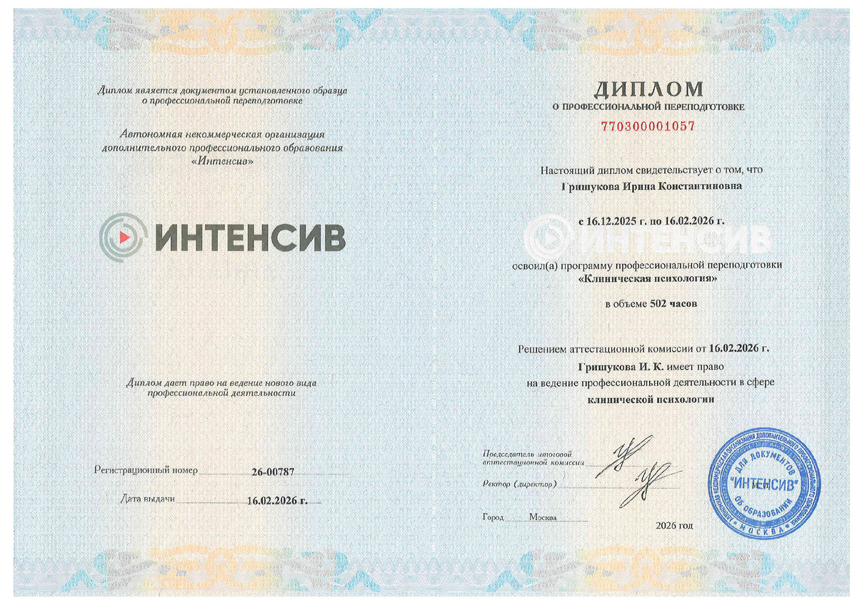 Друзья, я скучала. Меня не было здесь больше месяца. Кто-то заметил, кто-то подумал: «Ирина, где вы?» А кто-то, возможно, даже не обратил внимания - в этом мире столько всего, что можно пропустить. Но я хочу рассказать, куда я исчезла. Потому что это важно. Важно для меня, для моей работы, для нашей с вами встречи здесь. Я ушла в учёбу. Звучит просто, а на самом деле - это было глубокое, интенсивное погружение. Я проходила курс профессиональной переподготовки по специальности «Клиническая психология. Медицинский психолог». У меня уже есть диплом о высшем образовании по специальности «Психология». Эти знания всегда были со мной, они помогали мне в общении с пациентами, в работе с командой, в понимании себя. Но я давно чувствовала, что пора идти дальше. Что те знания, которые у меня были, просят углубления, новой опоры, более системного взгляда. И вот этот месяц я провела в учёбе. Не в онлайн-курсе «для галочки», а в настоящей, серьёзной переподготовке. С экзаменами, с чтением, с разборо