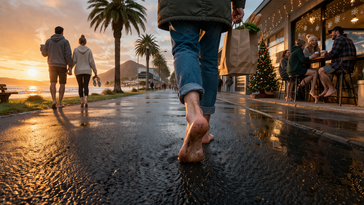 В большинстве стран мира выйти на улицу без обуви - значит поймать на себе странные взгляды. Или наступить на что-то неприятное. Или просто замёрзнуть. Но есть место, где босые ноги на асфальте - это не бедность, не эксцентричность и не забывчивость. Это норма. Причём не только летом. В Новой Зеландии, а точнее в небольших городах вроде Папамоа, Тауранги или Маунт-Маунгануи, люди спокойно заходят босиком в магазины, кафе, банки и даже на работу. И никто не обращает на это внимания. Новая Зеландия - страна на краю света, если смотреть с нашей стороны карты. Два острова в юго-западной части Тихого океана, примерно пять миллионов жителей, много овец и ещё больше зелёных холмов. Климат на Северном острове мягкий ,зима здесь - это плюс 8-12 градусов. Снег в прибрежных городах бывает крайне редко, а в некоторых местах его не видели десятилетиями. Но дело не только в погоде. В конце концов, плюс десять - это не то чтобы жара. Ходить босиком при такой температуре по бетону или мокрой траве -у