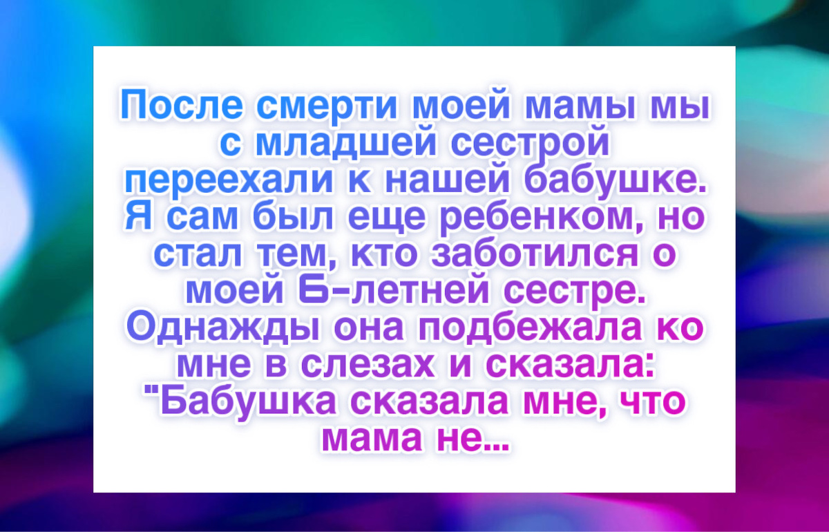 “После смерти мамы мы с младшей сестрой переехали жить к бабушке. Я сам был еще ребенком, но именно я заботился о своей шестилетней сестре.