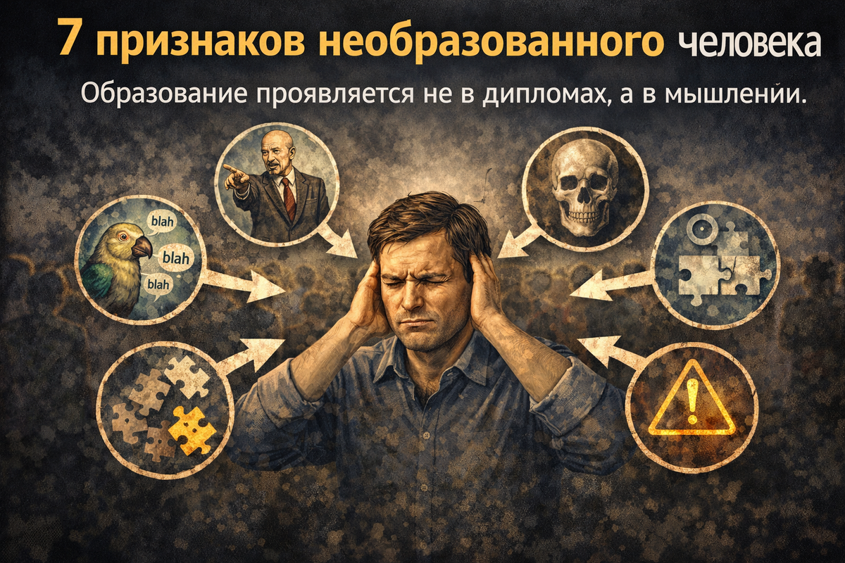Образование проявляется не в дипломах, а в мышлении. Это отсутствие способности мыслить. Человек не формирует собственное мнение, а пересказывает услышанное. Он принимает информацию как есть. Если сказал «эксперт» — значит, правда. Оценивает только последствия, не понимая процессов. Даже при новых фактах остаётся при старой позиции. Использует готовые формулы вместо анализа. Не хочет разбираться глубже. Вывод Образование — это не количество знаний. Это способность мыслить, анализировать и понимать. #мышление