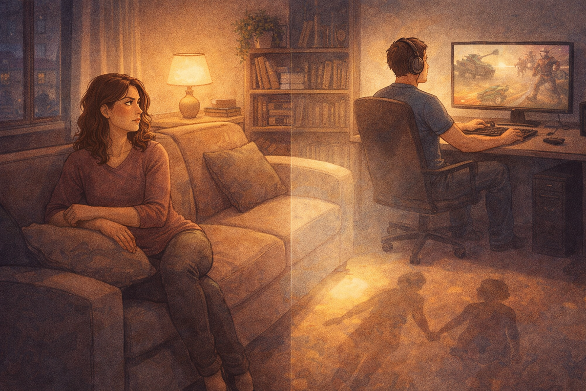 Я работал с парой, где конфликт из-за компьютера длился три года. Она плакала, он злился, дети росли в атмосфере "кто кого перекричит". Когда мы начали разбираться, выяснилось, что компьютер для него — не просто игрушка. Это единственное место, где он чувствует себя успешным. На работе — разнос, дома — требования, в жизни — долги. А в танчиках он — герой, лидер, победитель. Он не уходил в игру. Он убегал от реальности, которая его давила.