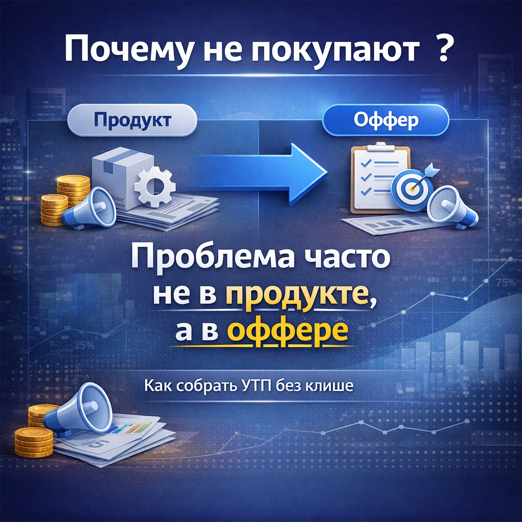 Есть одна мысль, которая постоянно подтверждается на проектах: продажи падают не только из-за цены или конкурентов, а из-за того, что предложение звучит размыто. Если человек не понял “что, для кого и какой результат”, он не покупает — даже если продукт объективно хороший.