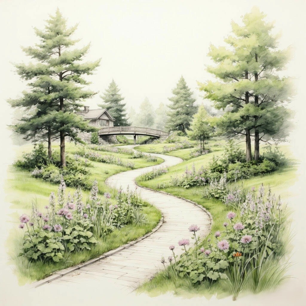 Не бойся смелых решений! Пусть тропа петляет, делает неожиданные повороты, ведёт к «секретным» местам. Представь, что это не просто дорожка, а сюжет сказки, где каждый поворот — новая глава.