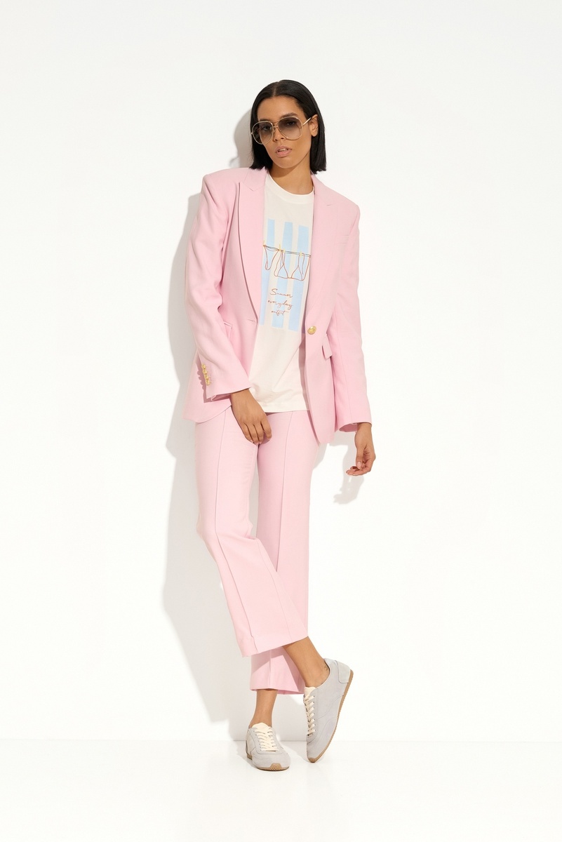 Жакет Lakbi 55710 в нежно-розовом цвете — элегантная база для стильных образов. Жакет Lakbi 55710 выполнен в нежно-розовом оттенке, который придаёт образу утончённость, свежесть и женственность. Модель имеет полуприлегающий силуэт и длину ниже линии бедер, благодаря чему красиво формирует фигуру и выглядит элегантно в любом образе. Каталог товаров Классический отложной воротник добавляет жакету аккуратности и делает его универсальным для деловых и повседневных сочетаний. Модель застегивается на одну акцентную пуговицу, которая становится стильной деталью дизайна и придаёт образу завершённость. По бокам расположены прорезные карманы с клапанами, которые добавляют практичности и подчеркивают классический характер модели. Lakbi 55710 — стильный и универсальный жакет, который подчеркнёт женственность и станет выразительной деталью современного гардероба.