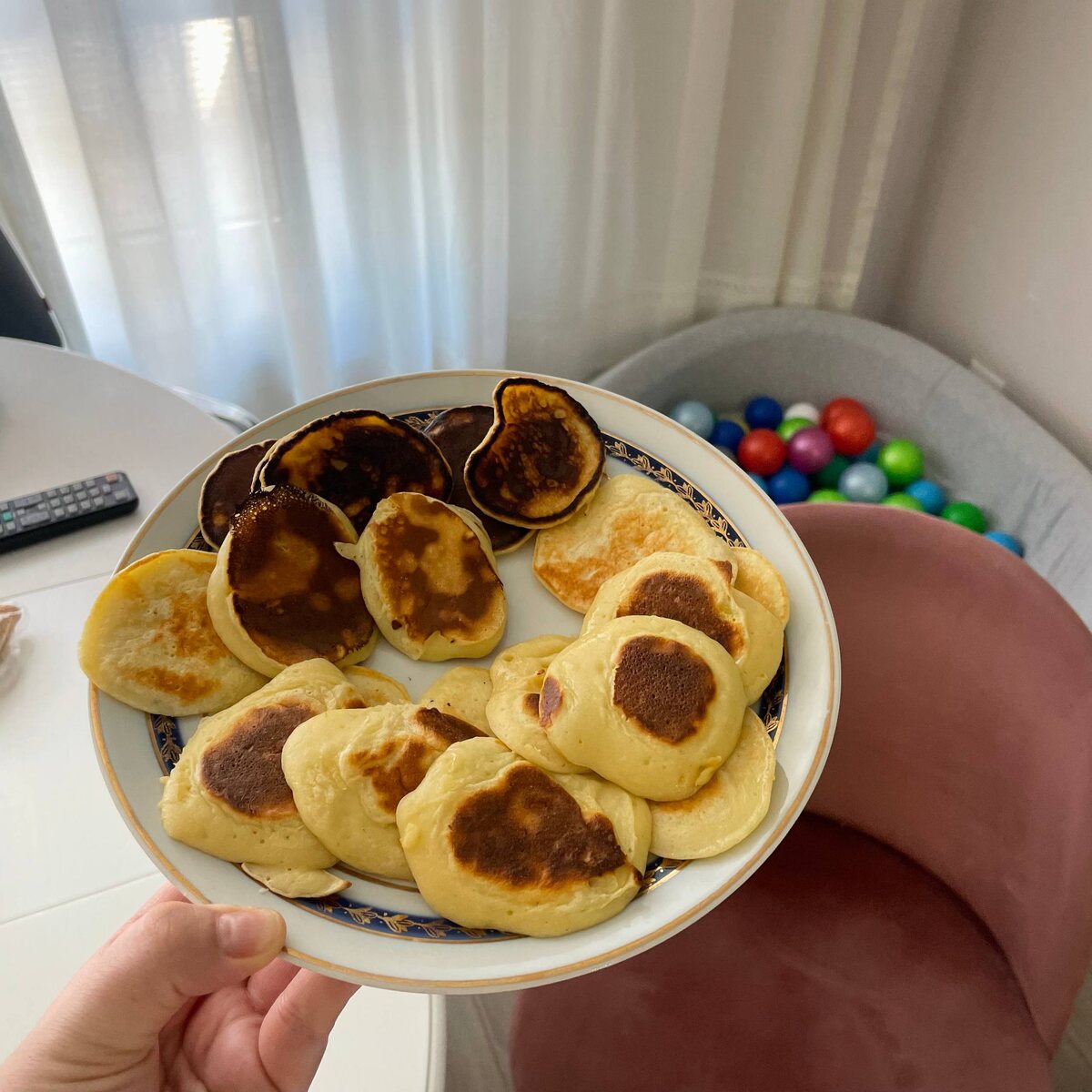 смело даю даже своей 11‑месячной Вале, так что можете считать их «детским»вариантом (но взрослым тоже очень нравятся!). Оладьи с яблоком на скорую руку Берём: 🤩2 яйца; 🤩1 ст. л. сахара; половинку яблока (натереть мелко); 🤩1 пакетик кефира; 🤩5–6 ст. л. муки; 🤩чуть‑чуть масла для жарки. Можно для пышности добавить разрыхлитель, адля аромата — корицу. Но я не стала, потому что готовлю для крохи. Приготовление: 1) Яйца, сахар и тёртое яблоко смешиваем венчиком. 2) Добавляем кефир и муку, вымешиваем до однородности. 3) Жарим на сковороде с капелькой масла — до румяности с двух сторон. Вуаля! Вкусный завтрак или перекус готов.Попробуйте — это действительно просто! Приятного аппетита ♥️🤎