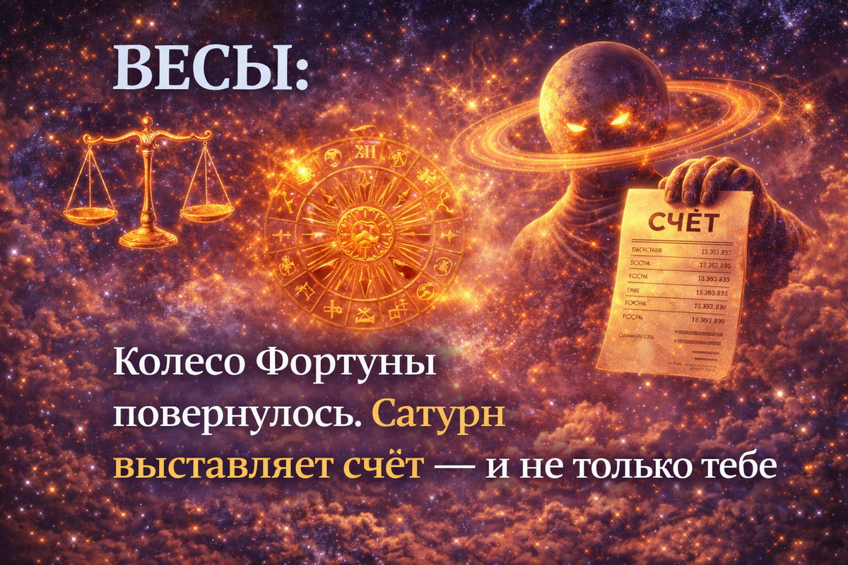 Весы — знак баланса. Но именно Весы чаще других знаков терпят дисбаланс, потому что ценят гармонию выше справедливости. Лишь бы не конфликт. Лишь бы не разрыв. Сатурн в оппозиции говорит: достаточно. И начинает устанавливать порядок — жёстко, без переговоров.