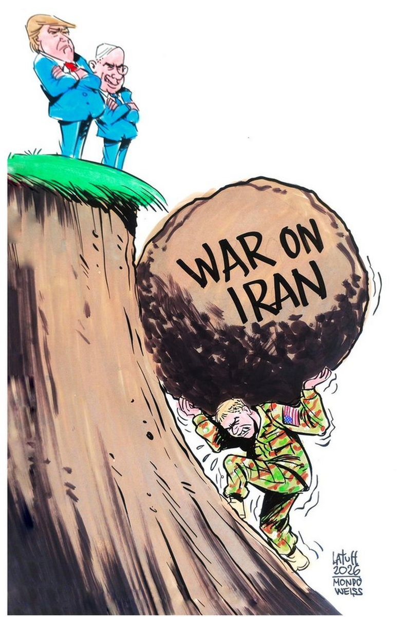 Рисунок Карлоса Латуффа (Бразилия). На камне, который катит Сизиф, написано: «Война с Ираном»