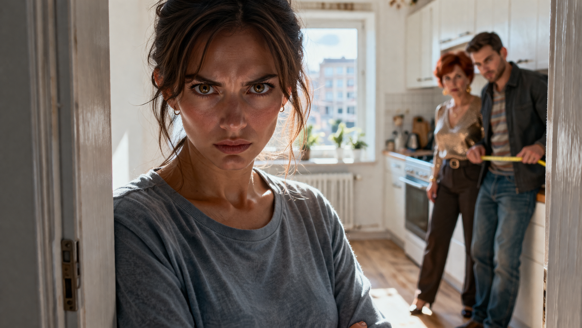 В кухне царило оживление. Галина Петровна восседала на Юлином любимом табурете, расставив локти. Рядом, прислонившись к подоконнику, стоял Витя — похудевший, с трясущимися руками и бегающим взглядом. А посреди комнаты, с рулеткой в руках, крутилась тётка в кричащем кожаном пиджаке — та самая Лариса. Она как раз замеряла расстояние от газовой плиты до стены.