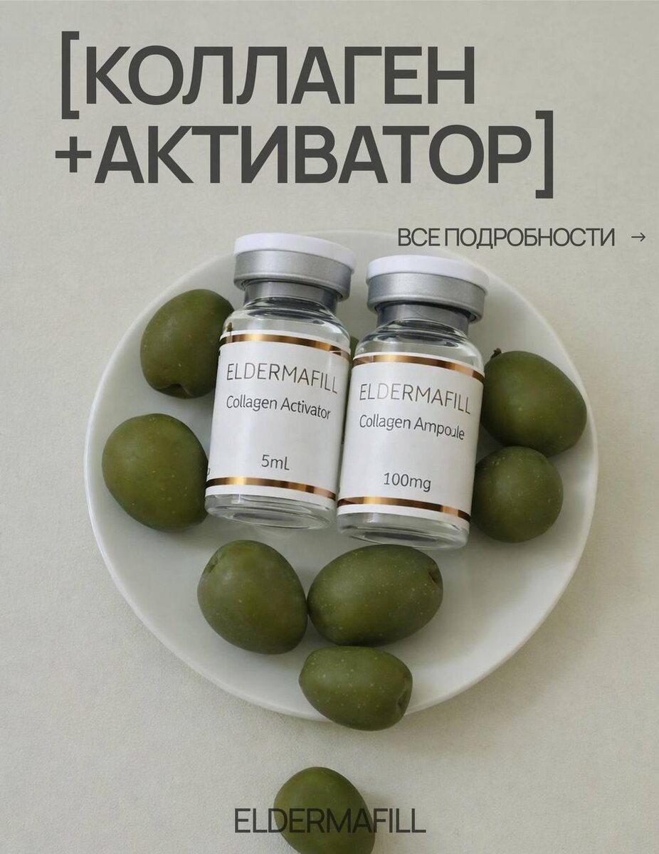 Коллагенотерапия — эффективная процедура для восстановления кожи. Она насыщает ткани коллагеном и стимулирует фибробласты — клетки, которые вырабатывают собственный коллаген. Почему коллагенотерапия — это важно? Коллаген — основной структурный белок нашего организма. Именно он отвечает за прочность, упругость и восстановление тканей. Он составляет около 25–33% всего белка в организме. Больше всего коллагена находится в костях, а также в коже, соединительной ткани, хрящах и стенках сосудов. С возрастом выработка коллагена снижается — поэтому кожа теряет плотность и появляются признаки старения. Что происходит после процедуры? ✅ кожа становится более плотной и упругой ✅ повышается эластичность ✅ уменьшаются морщины и складки ✅ кожа выглядит более молодой и свежей Активный компонент ампулы Collagen: Микронизированный коллаген I типа — 100 мг 🤍 Коллаген + Активатор от ELDERMAFILL помогает восполнить дефицит коллагена, улучшает качество кожи и способствует восстановлению её естествен