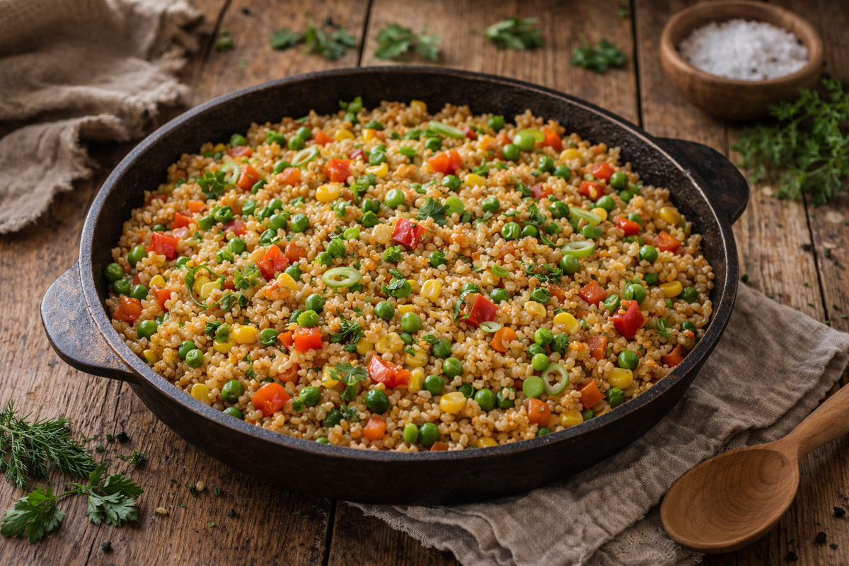 - Добавить булгур, перемешать, держать 1–2 минуты.