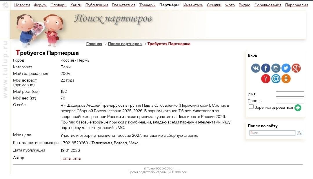 https://www.tulup.ru/partnerview5206.html Объявление выставлено еще 2 месяца назад, но новости об этом нигде не видела. Ребята являлись участниками ЧР (заняли последнее место) и членами сборной РФ текущего сезона. Очевидно, неудовлетворительные результаты стали тому причиной. #ПереходыРаспады