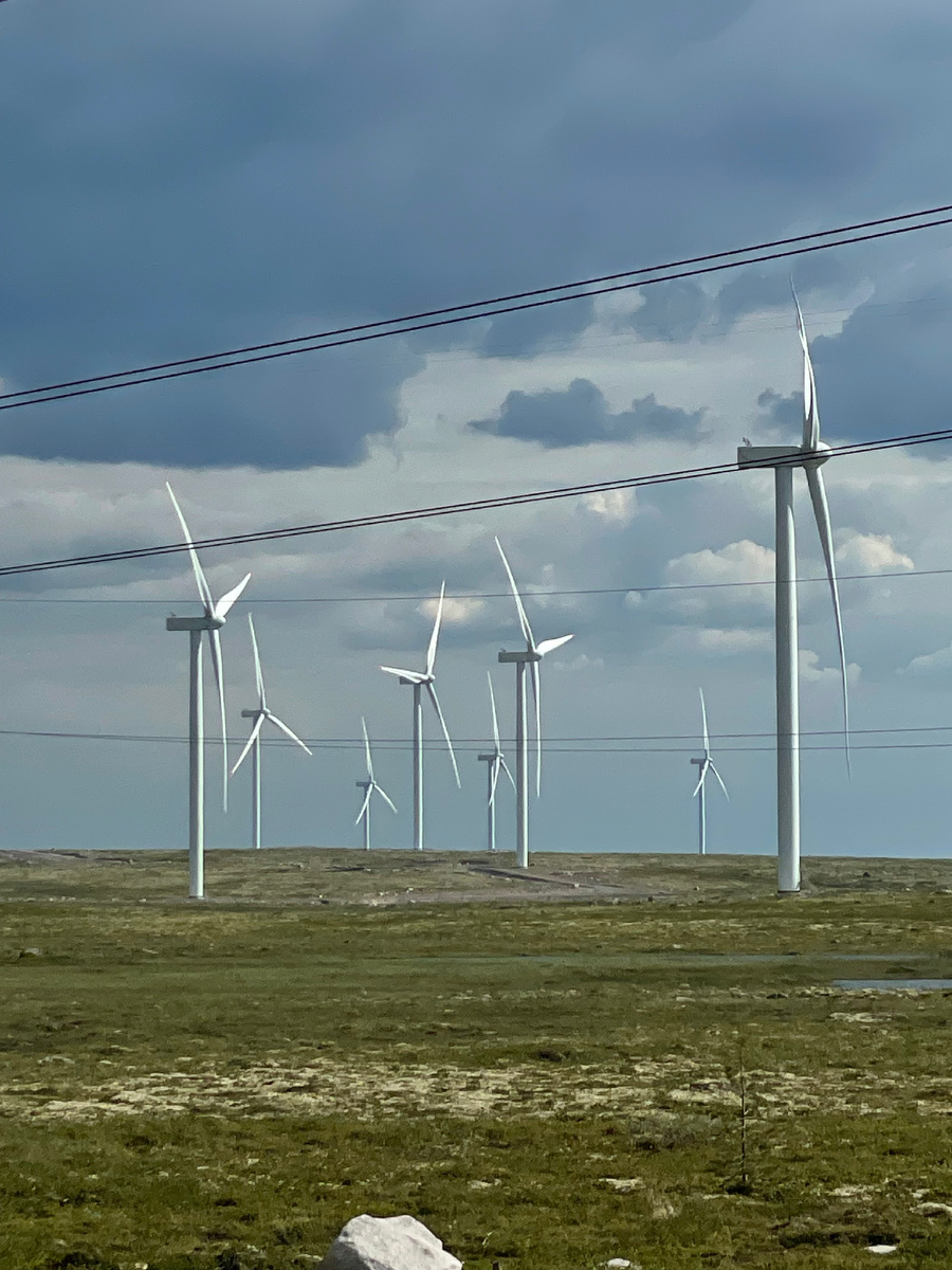 Дальше 2 часа великолепной, недавно обновленной дороги (120км) до Териберки. С ветряными электростанциями, тундровыми пейзажами и озерами по пути.