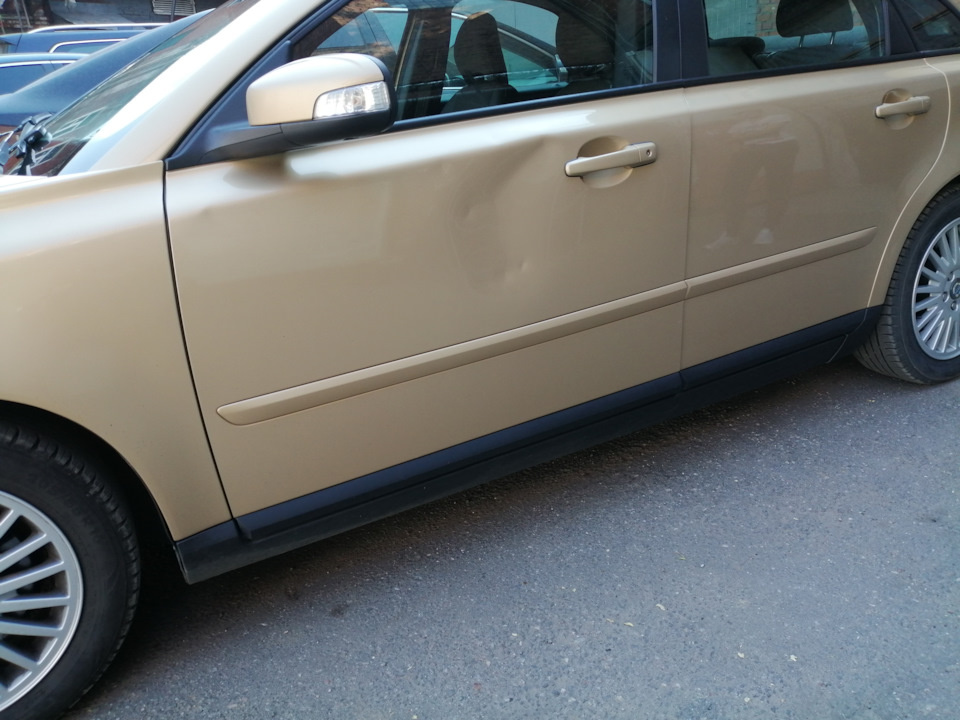 У нас на ремонте вмятин без покраски по технологии PDR Вольво. Вмятины на двери заметно портят вид автомобиля. Площадь повреждения достаточно велика