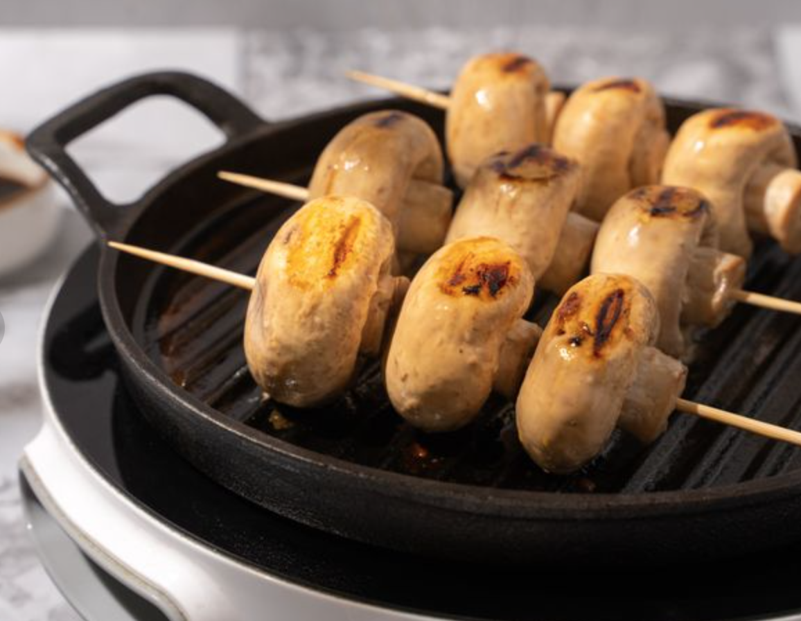 Шампиньоны — идеальный продукт для гриля. Они быстро готовятся, хорошо впитывают маринад и получаются сочными, с аппетитной корочкой. А стоят в разы дешевле мяса.