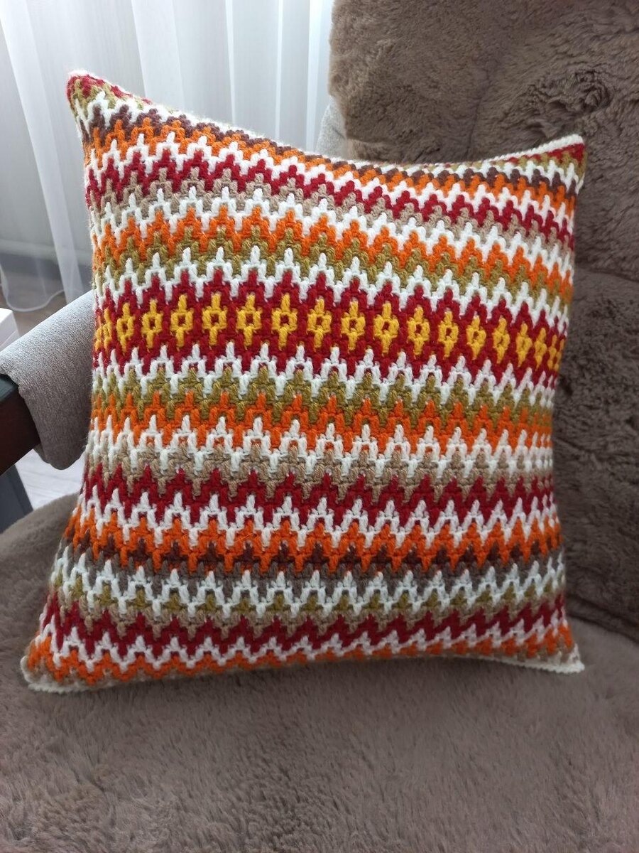 Новости наших чатов Отличный способ потратить остатки и одновременно получить удовольствие в процессе вязания, потому что узор этот очень простой и интуитивно понятный! Елена, спасибо за вашу работу! Елена: «Чехол на подушку . Съёмный, на молнии. Размер 40×40. Крючок Кловер 2,5. Нитки "Детская новинка". Остатки - в дело. Мозаика крючком по кругу. Узор зигзаг, ромбы. Не угадала при расчёте симметрию рисунка. Ну да ладно)))». Схема: https://docs.google.com/spreadsheets/d/15bsWNb8NamiQVusEABmGuiK5xfmM7Cp1HJQIiNTBMeQ/edit?usp=sharing