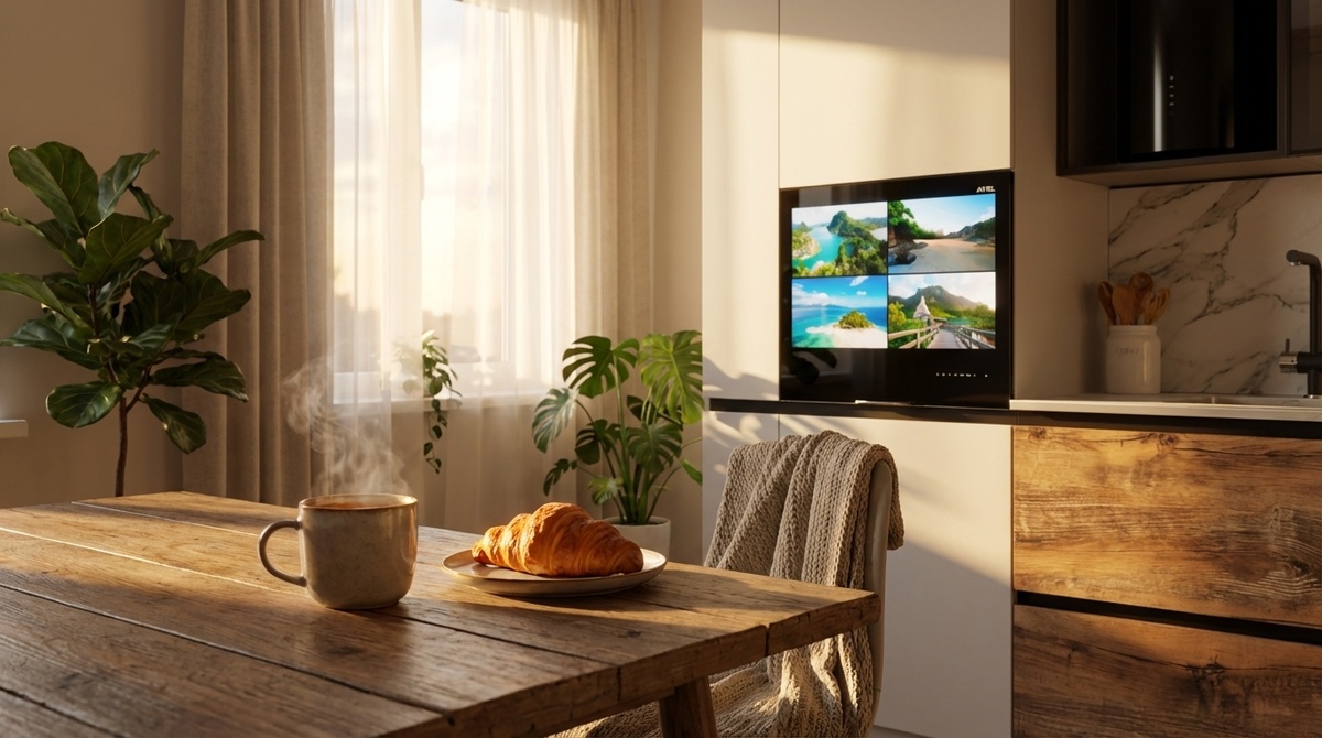У каждого из нас есть свои утренние и вечерние ритуалы. Кто-то не может проснуться без чашки крепкого кофе и свежих новостей, а кто-то привык смывать усталость дня в горячей ванной под любимый сериал. Но согласитесь, магия момента быстро пропадает, когда приходится пристраивать планшет между кастрюлями или бояться уронить телефон в воду. Мы в AVEL (официальный производитель специализированной электроники) верим, что технологии должны быть незаметными помощниками. Они не должны загромождать пространство проводами и кронштейнами. Они должны просто быть там, где они вам нужны. Кухня — это сердце дома, и здесь каждый сантиметр на счету. Вместо того чтобы выкраивать место для обычного телевизора, мы предлагаем сделать его частью вашего гарнитура. Наш фаворит для уютных завтраков: Вечер — время для себя. Горячая вода, пена и... любимое кино? С обычным планшетом это риск, а с нашими влагостойкими телевизорами — чистое удовольствие. Для тех, кто ценит эстетику: Покупая у нас, вы общаетесь напр