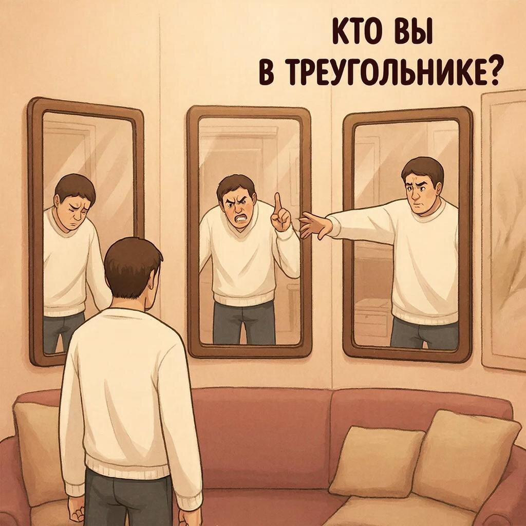 Как определить свою роль в отношениях и разорвать этот порочный круг Бывает так, что в отношениях один партнёр считает: «Если бы не я, нас бы не было». Он держит контроль над всеми ситуациями, потому что шаг влево, шаг вправо — а вдруг что-то пойдёт не так? Другой же партнёр просто становится жертвой этих обстоятельств: живёт в позиции «Пьеро», где всё плохо, и только один человек способен спасти. Но роли не статичны. Тот же самый «спасатель» может превратиться в «преследователя», раздувая огонь перед очередным спасением. Создаётся впечатление, что мы единое целое: «Он (она) без меня никуда, я ему (ей) нужен», — а со стороны партнёра звучит: «Я умру без него (нее)». Но это лишь иллюзия счастливых отношений, построенных не на крепком фундаменте, а на треугольнике Карпмана. Если коротко, это три роли, которые живут в конфликте: Важно: роли меняются. Жертва может стать преследователем («ты меня довёл!»), спасатель — жертвой («я столько для тебя сделала, а ты!»). И пока вы в треугольнике,