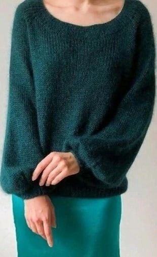 - Особенности: Рукав расширяется книзу («фонарик»), горловина позволяет носить джемпер классически или со спущенным плечом.