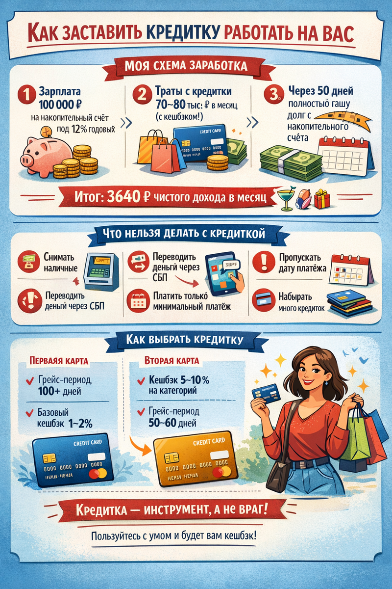 Я прошла все стадии принятия кредитки. Сначала боялась как огня. Потом взяла «на всякий случай» и пользовалась от безысходности, когда зарплата задерживалась. А потом… потом я поняла, что кредитка — это не враг и не друг. Это инструмент. Как бензопила: можно дров напилить, а можно дом построить.