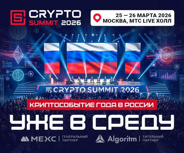 25–26 марта в МТС Live Холл VIII Crypto Summit соберет тех, кто реально двигает крипторынок — от регуляторов до Web3-команд. В программе — главные разговоры о будущем индустрии, масштабная экспозона и доступ к ключевым игрокам. Финал — afterparty в VK Gipsy, где нетворкинг продолжается без галстуков. Crypto Summit — крупнейшая площадка в России и СНГ, где эксперты, предприниматели, инвесторы и представители государства обсудят ключевые вопросы развития криптоиндустрии и блокчейн-технологий. Телекоммуникационным партнером VIII Crypto Summit выступит — РОСТЕЛЕКОМ