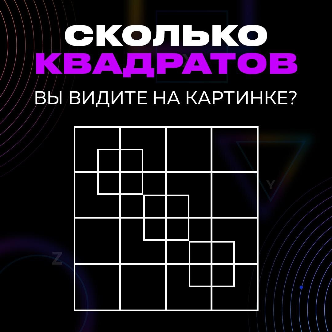 Посчитайте, сколько квадратов на картинке и напишите свой ответ в комментариях! 👇🏻