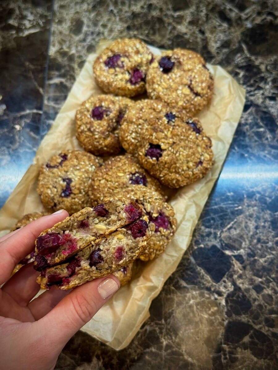 🔷Ингредиенты: ▪️Овсяные хлопья -250 гр ▪️Банан-2 шт ▪️Подсластить-по вкусу ▪️Ванилин -1,5 гр ▪️Корица, мускатный орех -по вкусу ▪️Растительное масло -50 мл ▪️Кунжут -3 ст.л ▪️Разрыхлитель-10 гр ▪️Вишня -100 гр ⠀ 🔷Способ приготовления: ⠀ 🔹1) Бананы размять в пюре , добавить подсластитель, ванилин, специи , перемешать. ⠀ 🔹2)Добавить растительное масло, овсяные хлопья, кунжут, разрыхлитель, перемешать. Добавить вишню и замесить тесто. ⠀ 🔹3)Сформировать печенье. Выпекать 25 минут при 180 градусах. ⠀🔷Приятного аппетита. ⠀Автор рецепта: @maya_foodblog ⠀#maya_foodblog_выпечка ⠀#maya_foodblog_печенье