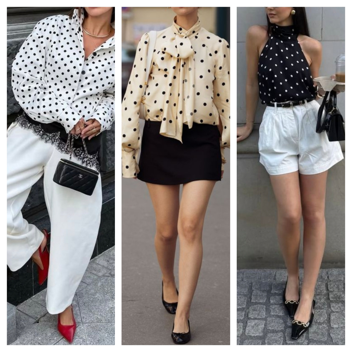 Милый романтичный принт в горошек сохраняет популярность уже три года подряд. Стилисты освоили новые способы его сочетания, создавая современные образы. Горох — один из инструментов передачи женственности: деликатной, аристократичной, с нотками ретро. Для современных образов выбирайте одежду с актуальным кроем и редким расположением горошка.