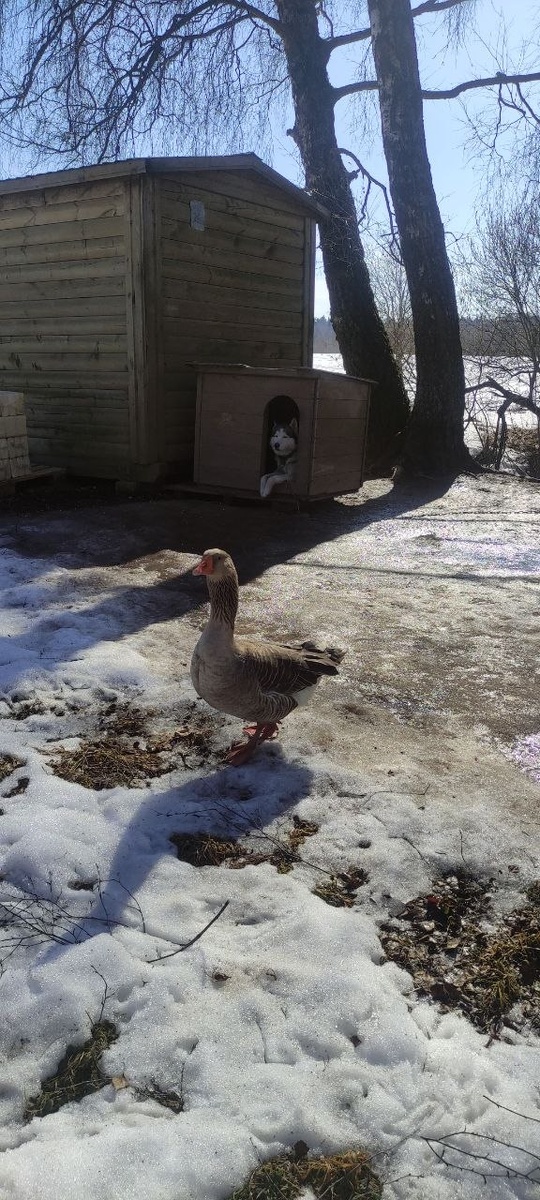 Хаски Хасан и гуси. Хасан делает вид, что гуси не съедобные😇. И гуси делают вид, что они не съедобные💅